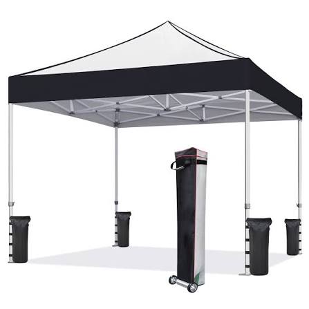 10×10 Heavy Duty Pop Up Canopy Tent, Easy Setup Instant Outdoor Canopy with Vented Top and Wheeled Bag, Bonus 8 Stakes and 4 Ropes, Great for Trade Shows, Events, Black
