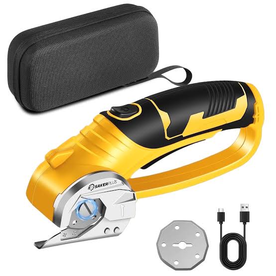 4V 2000mAh Cordless Cardboard Cutter, Electric Box Cutter for Cardboard with 2 Titanium Blades,LED & Safety Lock,Max Cutting1/4″,Rotary Cutter for Fabric,Leather,Gifts for Men&Women – Yellow