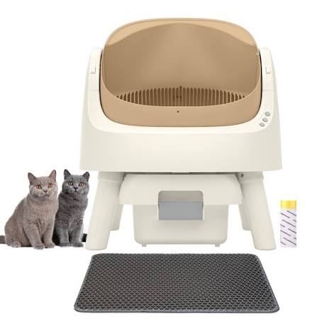 Self Cleaning Cat Litter Box, Open-Top Automatic Litter Box for Multiple Cats with Safety Sensors, Includes Liner Bags and Litter Mat, Grey