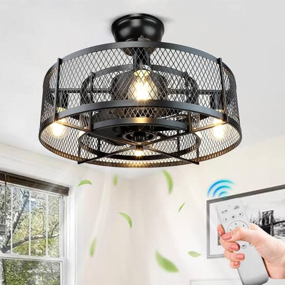 Depuley Caged Ceiling Fan with Light: 20″ Black Small Fandelier Ceiling Fan with Remote – Farmhouse Fandelier with Fan Light Fixture for Low Profile Indoor Bedroon Kitchen Living Dining Room