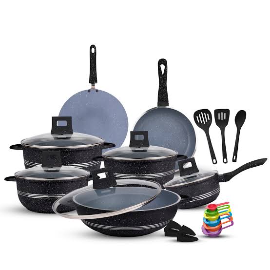 23 Pcs Pots and Pans Set, Non Stick Ceramic Cookware Set with 3 Frying Pans, Healthy Non-Toxic, Large Capacity,Induction Compatible, PFAS/PTFE/PFOA Free, Black