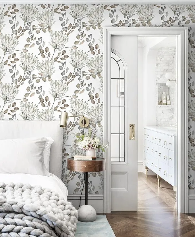 - Pattern Design:This floral wallpaper pattern takes flower and leaf as the main element and combines watercolor art style. Elegant gray and light earthy tones create a fresh and soft atmosphere, which can easily add natural vitality and artistic style to the wall