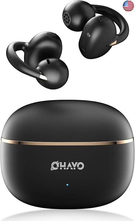 OHAYO Clip-On Earbuds – Open Ear Headphones: 6.5H Playtime, 4.7g Ultra-Light – 2025 Wireless Bluetooth 5.4, 12mm Dual Drivers, IPX6 Sweatproof