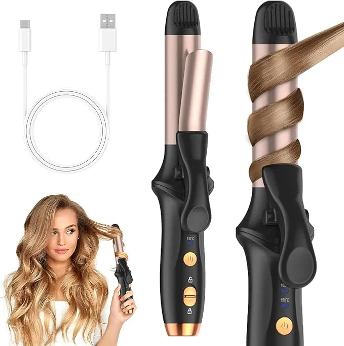 - 【3 Temperature Levels and Lock Button】Cordless curling iron’s Led display has 3 temperature levels, from 150°C/302°F to 180°C/356°F, suitable for all hair types. 150°C/302°F for thinning hair, 165°C/329°F for bleached and coloured hair, and 180°C/356°F for normal hair. The mini curling iron is equipped with a locking button feature to ensure that you don’t accidentally touch other buttons during use, and a comfortable handle to ensure maximum control and stability during use