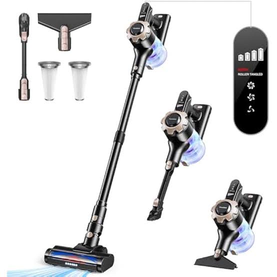 Cordless Vacuum Cleaner, 8-in-1 Vacuum Cleaners for Home, 45Mins Runtime, Anti-Tangle Stick Vacuum with LED Display, Rechargeable Lightweight Vacuum for Pet Hair/Carpet/Floor (Blue)