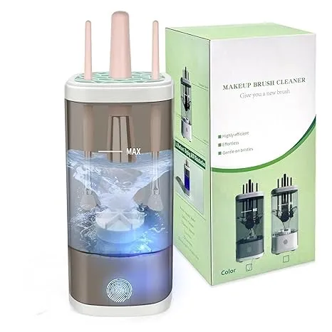 - 【Effortless 3 Step Operation】Simplify your cleaning routine with our makeup brush cleaner, which allows for simultaneous cleaning of multiple brushes. Simply follow these steps: 1. Pour water and cleaning solution into the cleaner. 2. Attach your brushes to the silicone holders. 3. Press and hold the switch for 1 seconds to initiate the cleaning cycle.