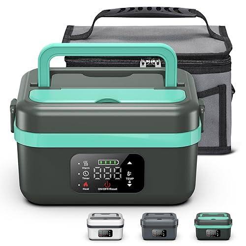 Heated Lunch Box, 18000mAh Cordless Electric Lunch Box with Scheduled Heating, 1.5L Rechargeable Portable Food Warmer with Digital Display for Work, Travel, Office, Camping