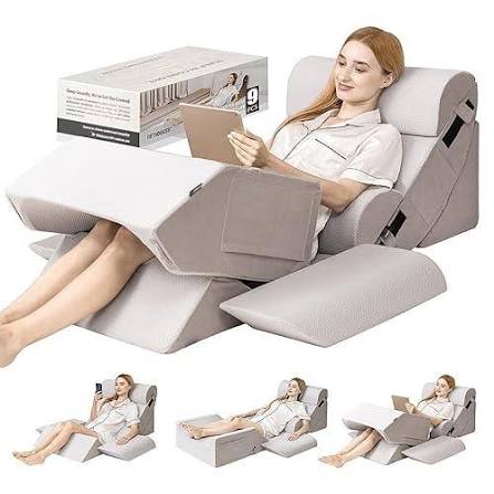 9PCS Orthopedic Bed Wedge Pillow Set for After Surgery Recovery, Body Positioners for Back and Leg Pain Relief, Adjustable Memory Foam Comfort for Sitting up in Bed, Ideal for Adult Acid Reflux & GERD