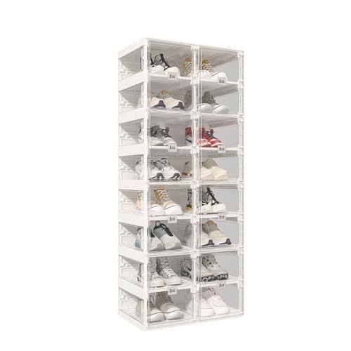 Thicken & Sturdy Clear Shoe Storage Organizer with Magnetic Door, Stackable Boxes for Closet, Foldable Space-Saving Shoe Rack for Sneaker Boot Container, Plastic Shoe Cabinet Shoe Box 6 Pack, White